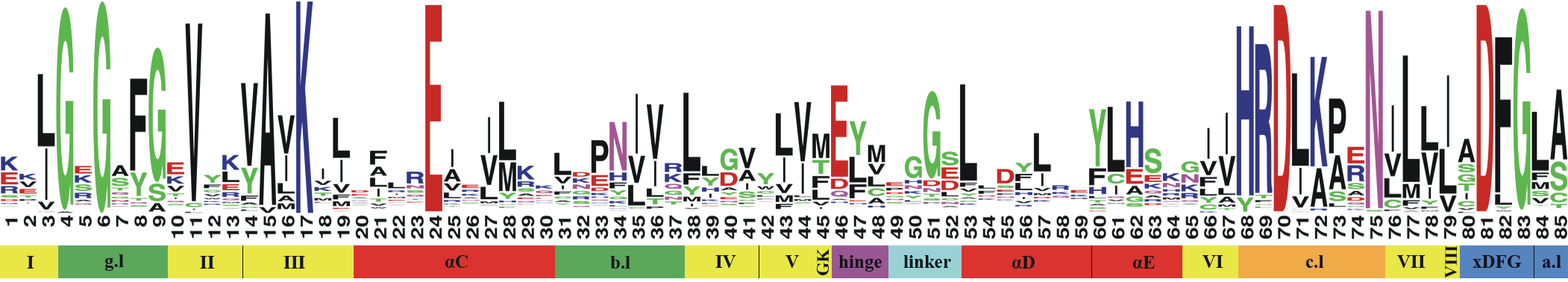 The master sequence alignment has been optimized for the correct alignment of the 85 pocket residues. This alignment is therefore not suitable to be applied in a different setting. However, for a good overall alignment of kinases, we recommend using the kinase alignment of Manning et al., which is freely available at kinase.com.